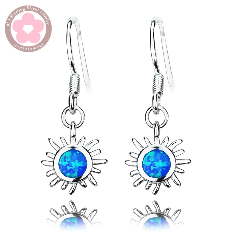 RH0050 Синий Опал Драгоценный Камень Стерлингового Серебра 925 Серьги для Женщин Очарование Серебряные Ювелирные Изделия Маленькая Капля Серь...