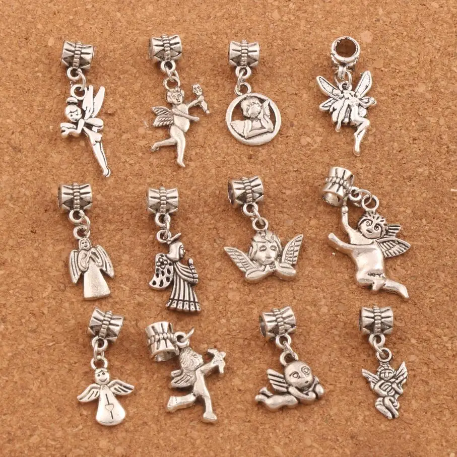 120 шт цинковый сплав Ангел болтаются амулеты большая дыра бусины подходят Европейский браслет ювелирные изделия DIY BM58