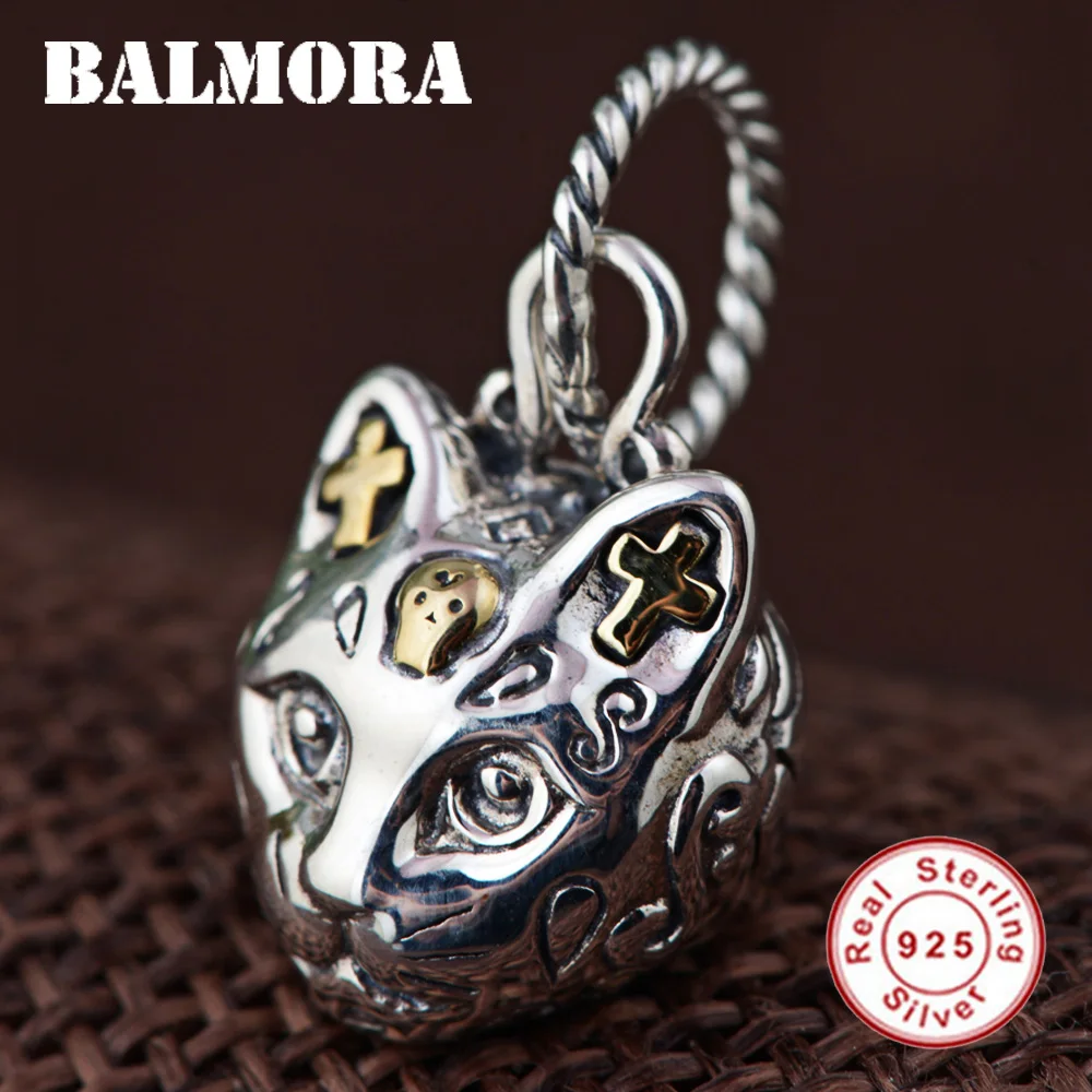 Balmora 100% натуральная 925 пробы Серебряные ювелирные изделия Cat головы и крест подвески в стиле ретро для ожерелья Для женщин Для мужчин аксессу...