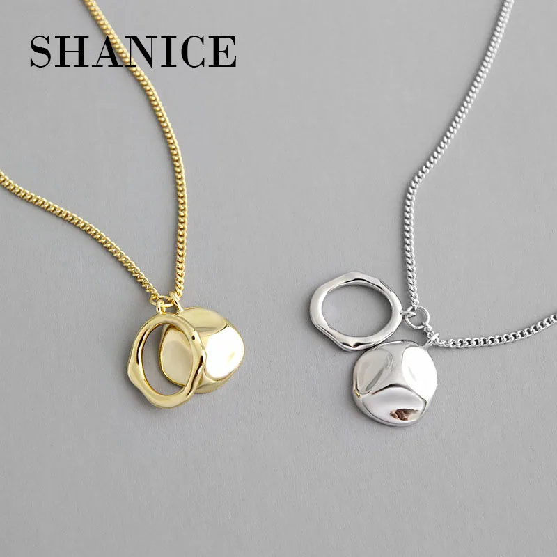 Шанис чистого серебра 925 пробы серебро Цепочки и Ожерелья Личность геометрической формы круг медаль утверждающий кулон Для женщин серебрян...