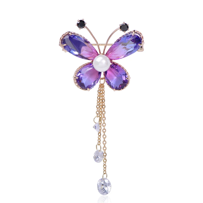 Blucome красивые насекомых Бабочка Брошь с искусственным жемчугом циркон медь Jewelry для женщин Одежда для девочек шарф воротник булавки интимны...