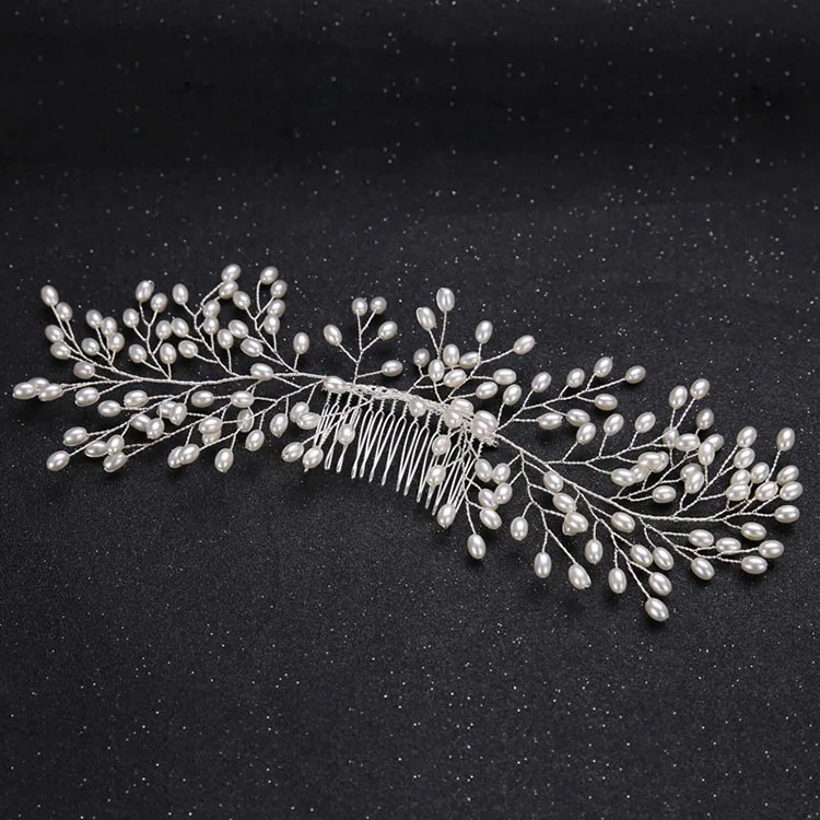 SLBRIDAL ручной работы Серебряный проводной жемчуг цветок свадебные волосы гребень свадебный головной убор повязка для невесты аксессуары для...