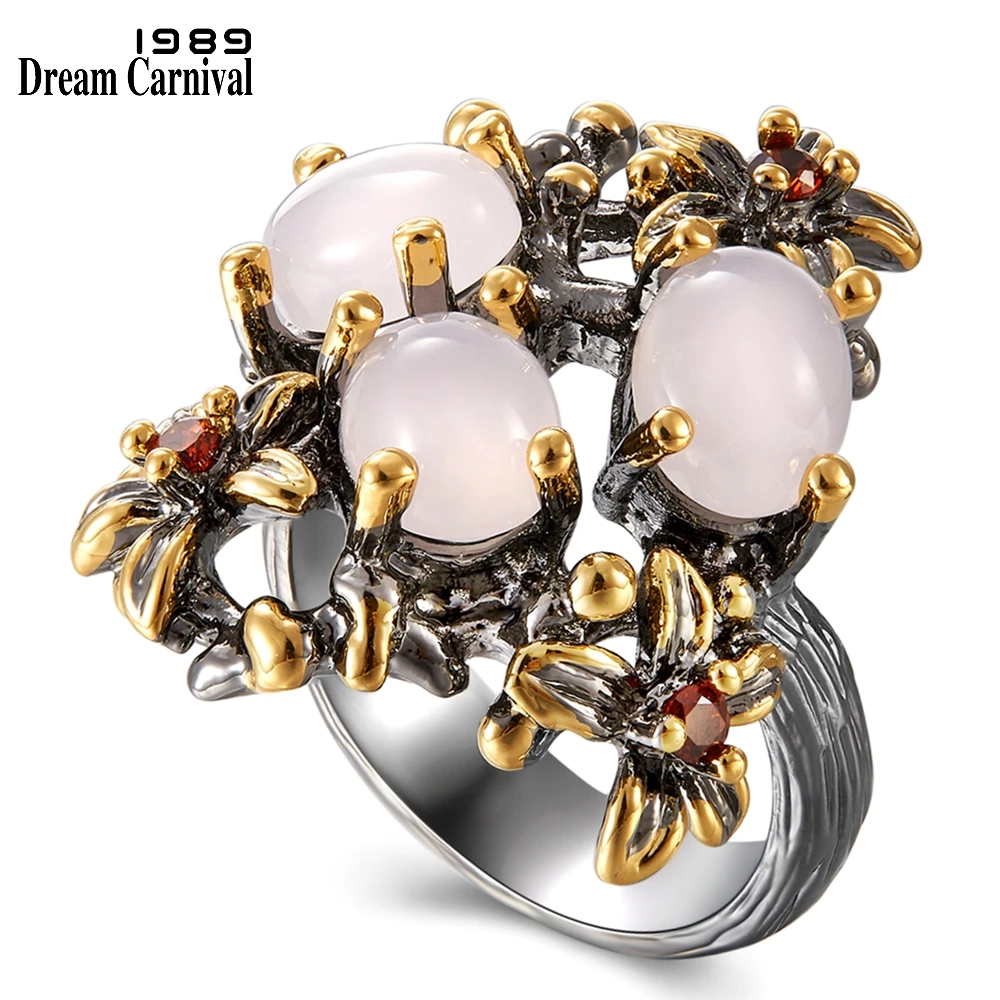 Женское кольцо DreamCarnival, черное, золотое, с розовым опалом