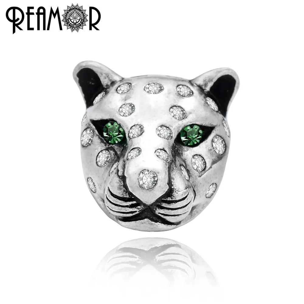 REAMOR DIY Зеленые хрустальные глаза животных металлические бусины циркония голова леопарда медные бусины для браслета аксессуары для ювелирных изделий