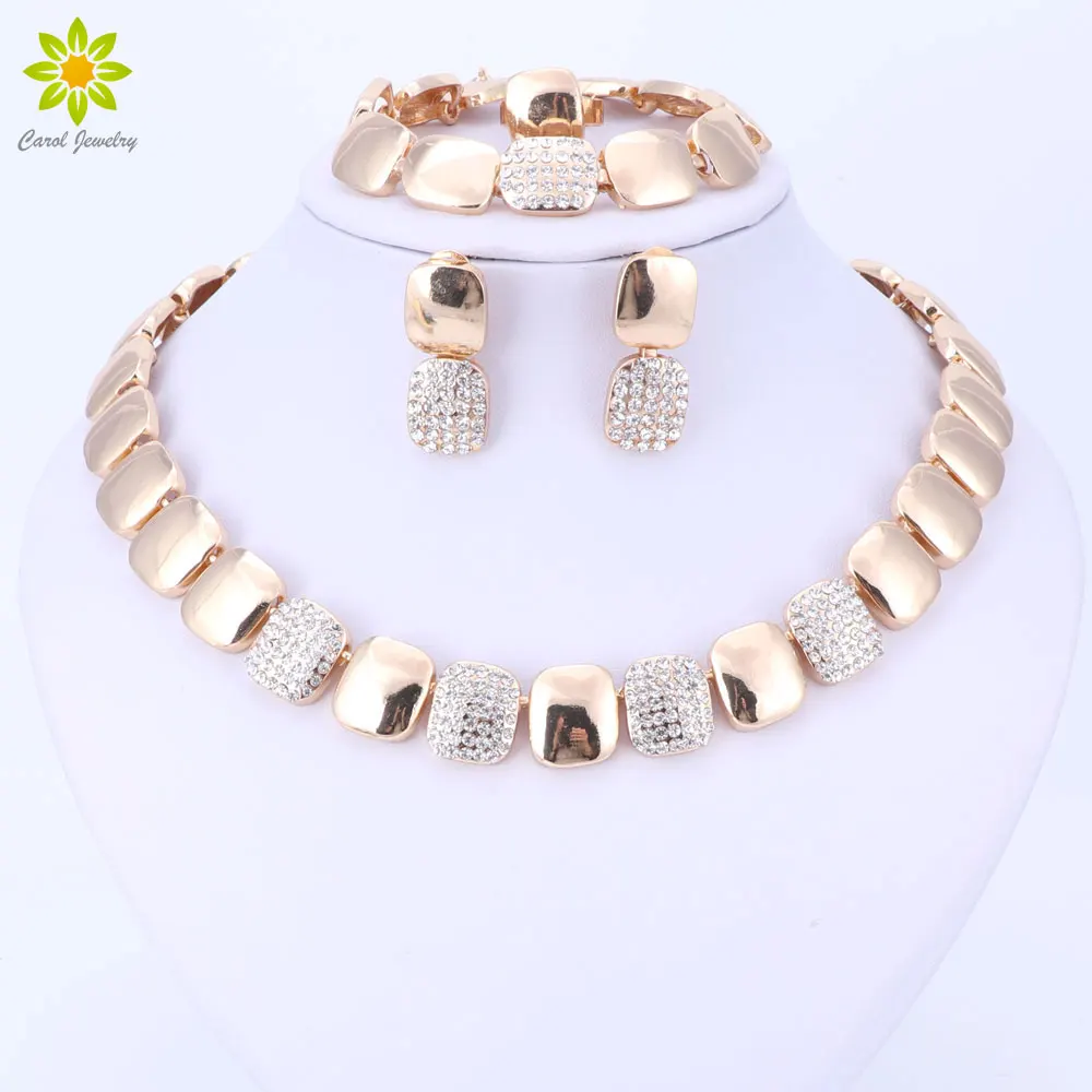 Дубай золотые Цвет Ювелирные наборы нигерийской свадьбы Африканский Бусины Кристалл Свадебный комплект украшений Для женщин Свадебная ве...