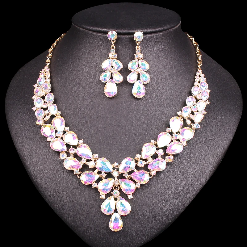 Модные наборы свадебных ювелирных изделий с кристаллами, аксессуары для костюма, свадебное ожерелье, серьги, вечерние ювелирные изделия, подарки для невест, женщин, девушек