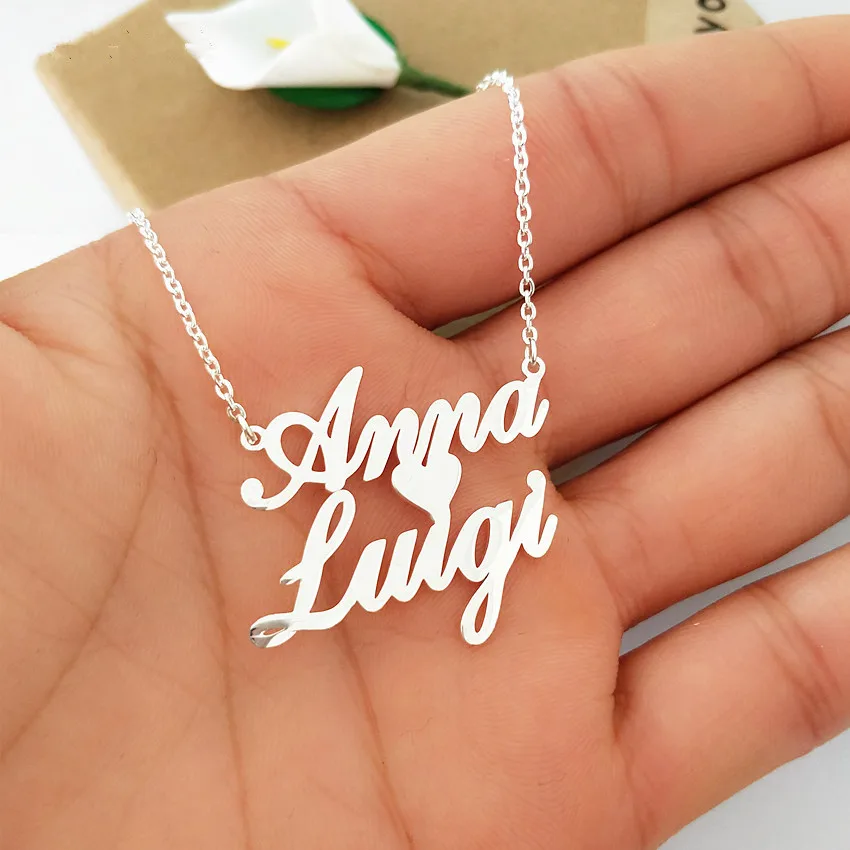 Заказное двойное имя ожерелье из нержавеющей стали персонализированное сердце 2 ожерелье