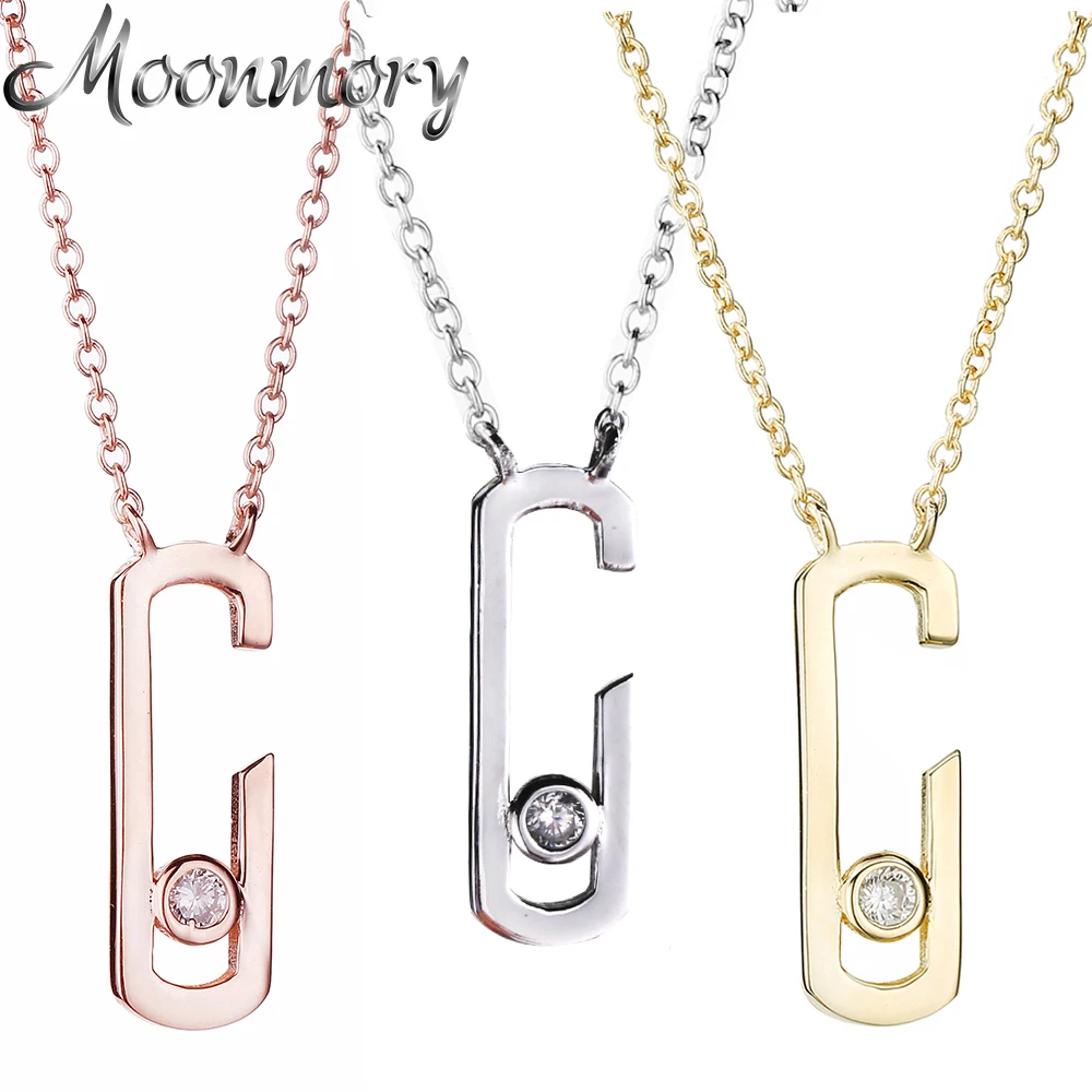 Moonmory Gigi Hadid коллекция 925 серебро двигаться наркомании кулон Цепочки и ожерелья для Для женщин белый камень 3 цвета 45 + 5 см отрегулировать