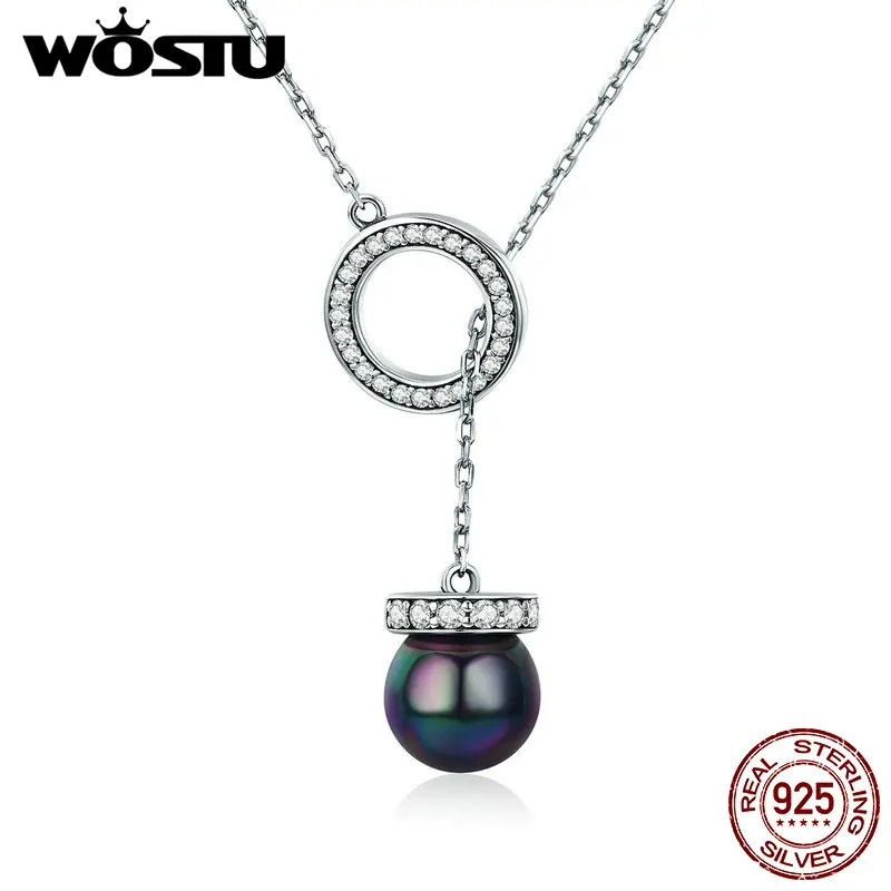 WOSTU, хит продаж, мода 100%, 925 пробы, серебро, счастливый круг и черный жемчуг, подвеска, ожерелье для женщин, S925 серебро, ювелирное изделие, подарок CQN200