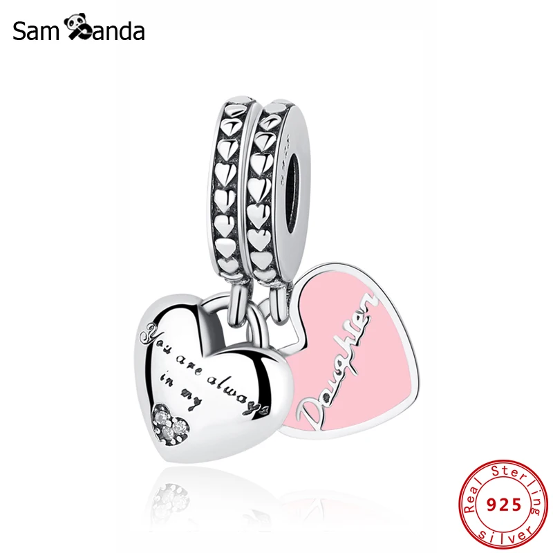 Оригинальный 100% стерлингового серебра 925 бисера очарование мать дочь кулон прелести розовое золото сердце Fit Pandora Браслеты Для женщин ювели...