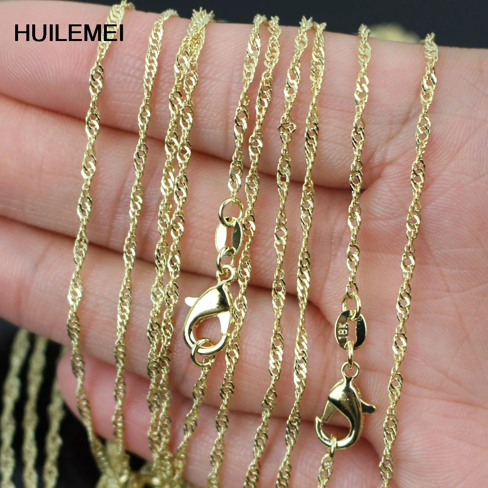 Женское Ожерелье с волнистой цепочкой, 10 шт./лот, золотого цвета, 2 мм