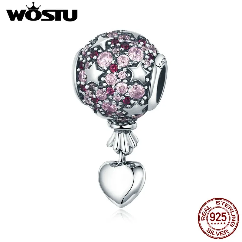 WOSTU роскошный 925 пробы Серебряный Романтическая любовь воздушный шар Подвеска Шарм подходит бусины браслет ожерелье ювелирные изделия пода...