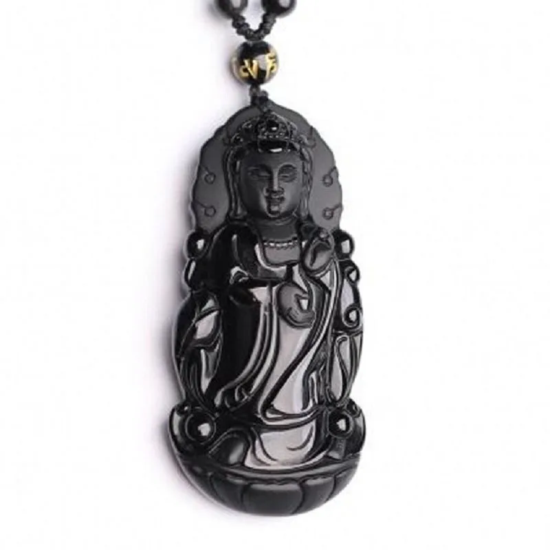 Был Blessed Природные обсидиана Гуаньинь кулон природный кристалл Цепочки и ожерелья свитер цепи кулон влюбленных Цепочки и ожерелья Аксессуа...