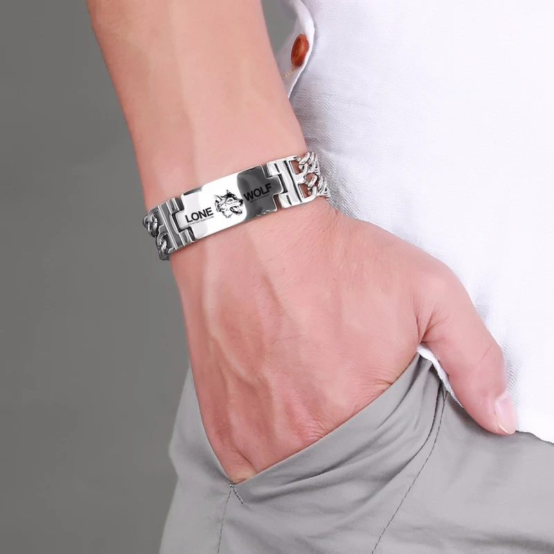 Индивидуальный 18 мм для мужчин's нержавеющая сталь цепь двойная ссылка ID идентичность браслет в серебро мужской ювелирные изделия