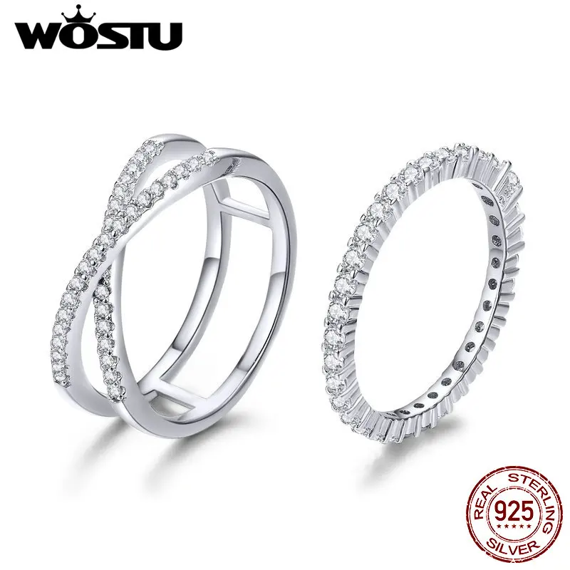 WOSTU, Настоящее серебро 100% 925 пробы, влюбленные двойные кольца для женщин, помолвка, свадьба, минимализм, Серебряное ювелирное изделие, подарок CQR463