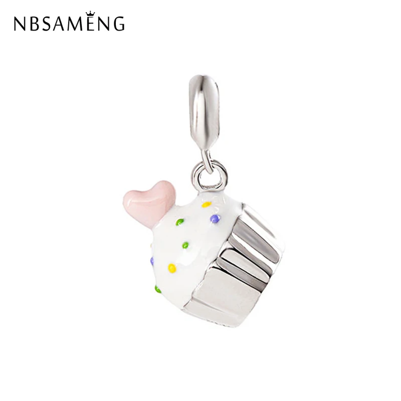 Новый 100% 925 пробы серебряные шарики Шарм Сердце Sprinkles кекс кулон эмаль прелести Fit Pandora Браслеты Для женщин Diy ювелирных