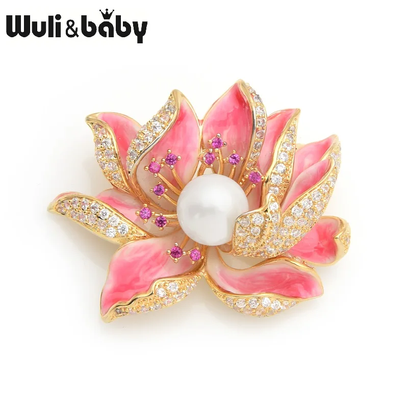 Wuli & baby Новая Медь Цветок лотоса Броши Имитация Жемчуга Цветок свадьбы банкет роскошная брошь булавки подарки