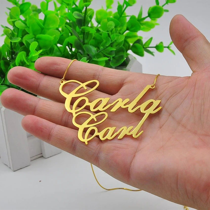 Персонализированные ювелирные изделия из нержавеющей стали на заказ любое двойное имя золотые ожерелья и подвески серебро Bijoux Femme Collares под...