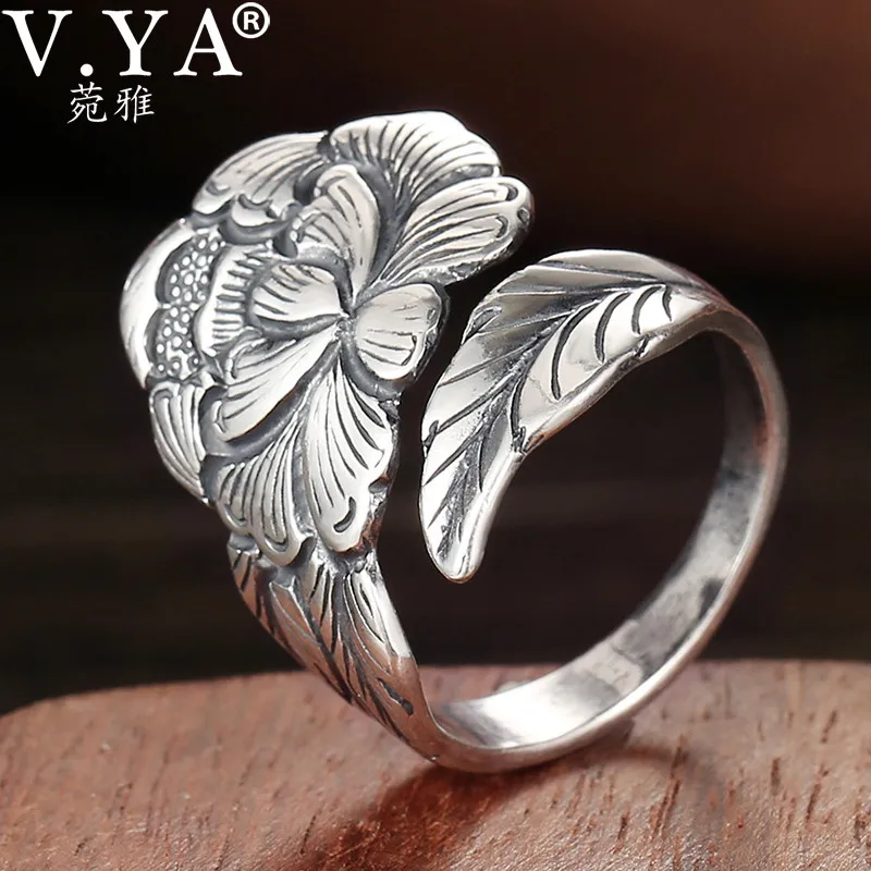 V. Я 2,3 см Пион цветок регулировочного кольца для Для женщин Настоящее серебро 925 проба ювелирных украшений женские кольца, подарок на день ро...