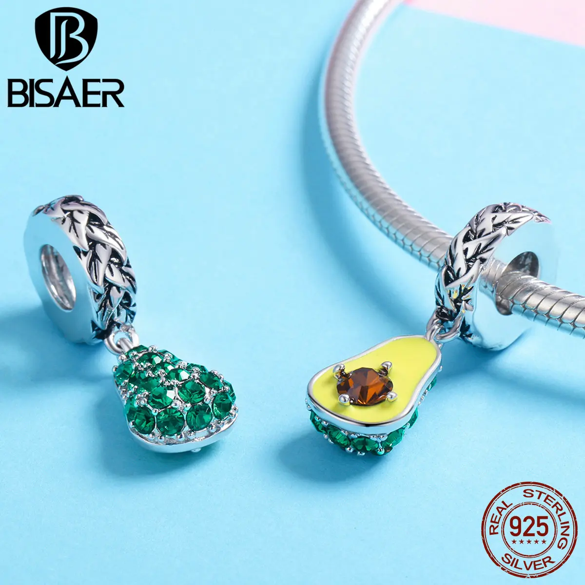 BISAER Новое поступление 925 пробы серебряные Фрукты Шарм Лето авокадо бусины эмаль fit Браслеты Оригинальные Серебряные украшения EFC014