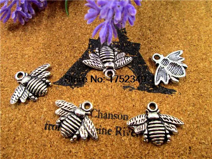 150 шт -- пчела подвески, древнее тибетское серебро прекрасный пчела очарование кулон 16x21 мм