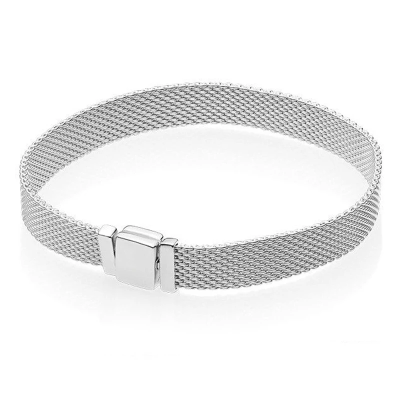 2019 оригинальный бусины из стерлингового серебра 925 очаровательный отражающий сетчатый Браслет со змеиной цепочкой, базовый браслет, подходит для женщин, ювелирные изделия DIY