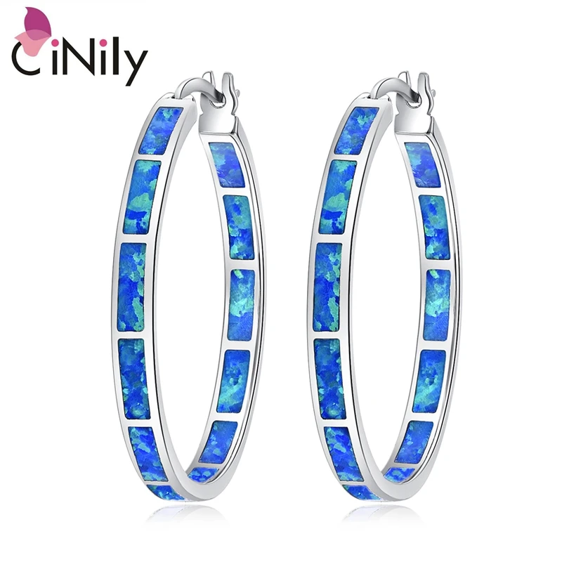 CiNily Синий Зеленый Огненный Опал обруч с камнем серьги с серебряным покрытием Розовое золото Цвет большие круглые стекла, в стиле «хип-хоп», «панк» вечерние ювелирные изделия для женщин