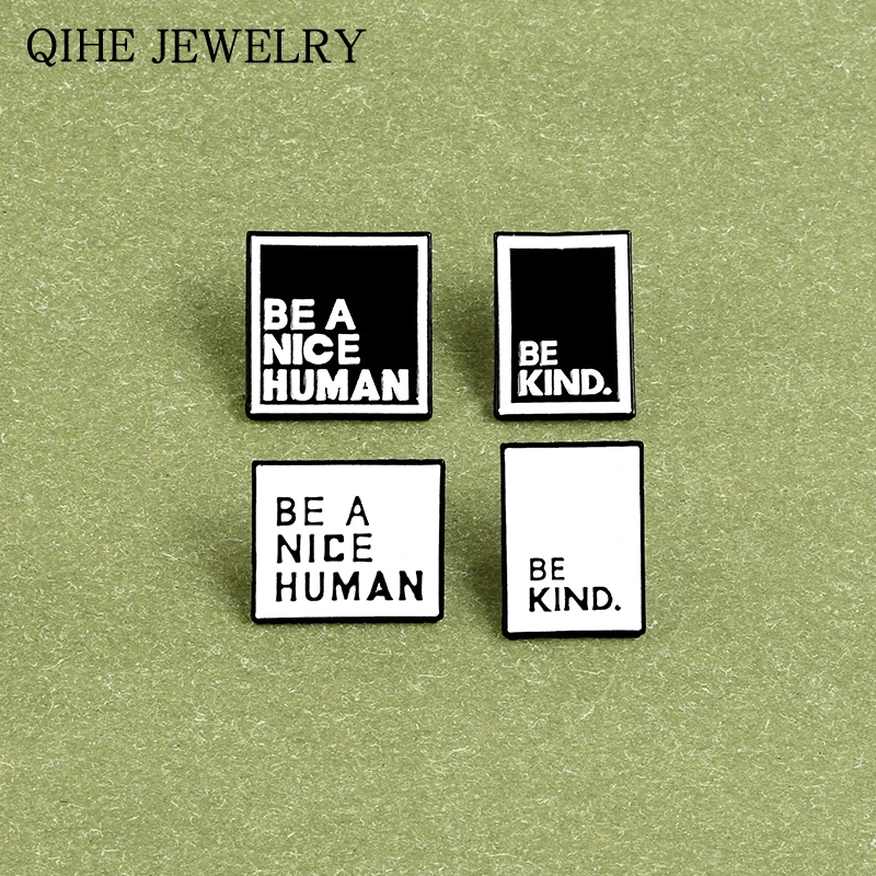 Быть хорошим человеческим булавкой черный белый значок быть вид эмалированные булавки броши "Цитата" для женщин мужчин модные ювелирные из...