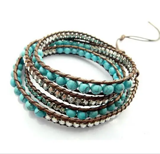 6 мм синий природный камень бисера Обёрточная Бумага браслет новый Дизайн ручной работы Обёрточная Бумага браслет