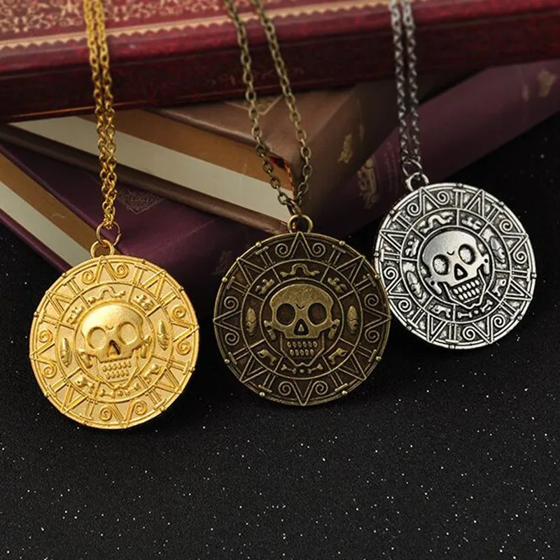GHRQX Горячие Пираты Карибского моря Цепочки и ожерелья Джек Воробей АЦТЕК медальон в форме монеты Винтаж золото Бронзовый Серебристый кулон ...