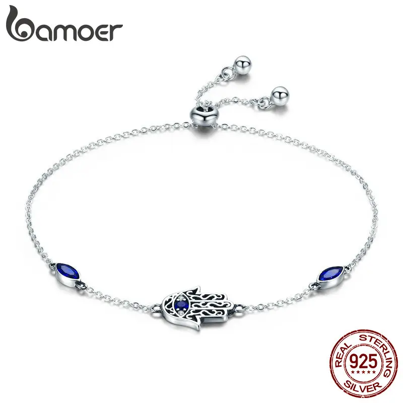 BAMOER горячая Распродажа 100% 925 пробы Серебряный счастливый Хамса Фатима рука звено цепи браслеты для женщин синий cz серебряные ювелирные изде...