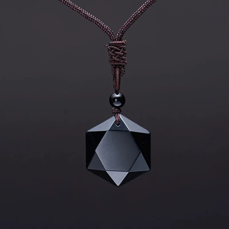 Брюс принять Прямая доставка Природный камень энергии черный обсидиан Шесть звезд Лаки амулет цепочки и ожерелья кулон защитить вашу безоп...