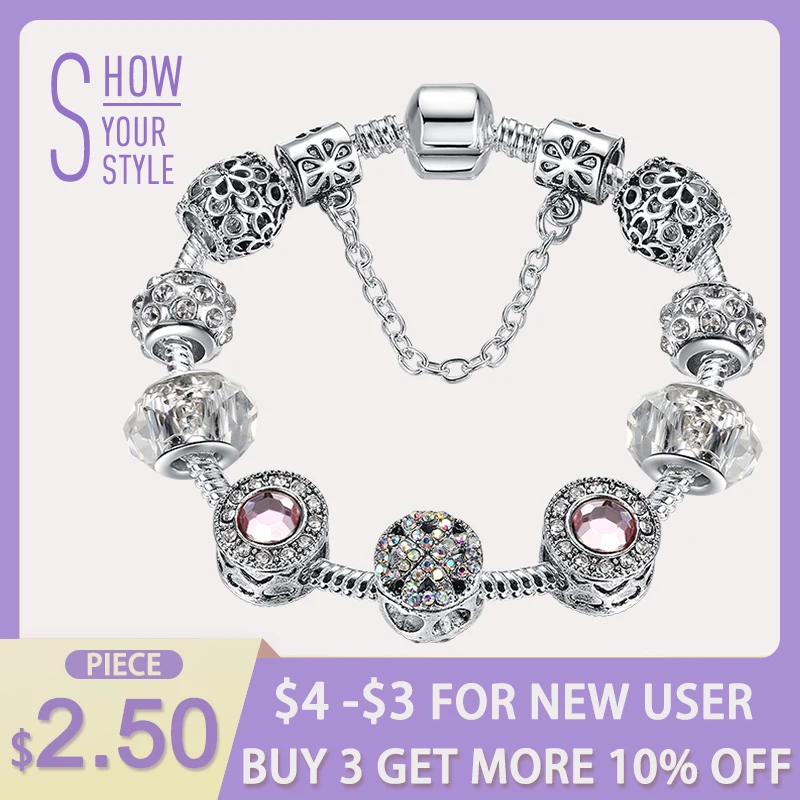 Оригинал, серебро 925 пробы, кристал, клевер с четырьмя листами, браслет с чистым муранским стеклом, бусы, очаровательный браслет, для женщин, ...