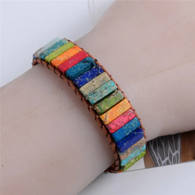 Многоцветный Браслет Boho натуральный обхватываемый браслет с камнями браслет чакра дропшиппинг один кожаный обёрточная Бумага браслет мощ...