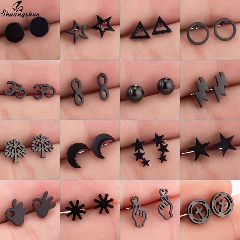 Shuangshuo, милые маленькие серьги, маленькие серьги, мини серьги-гвоздики для женщин, девочек, детей, луна, звезда, жизнь, дерево, животные, геометрические серьги