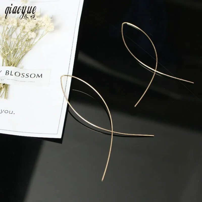 Корейские южные серьги, модные ювелирные изделия, простой гвоздик в форме креста, серьги для женщин, металлический дизайн воды, серьги линии...