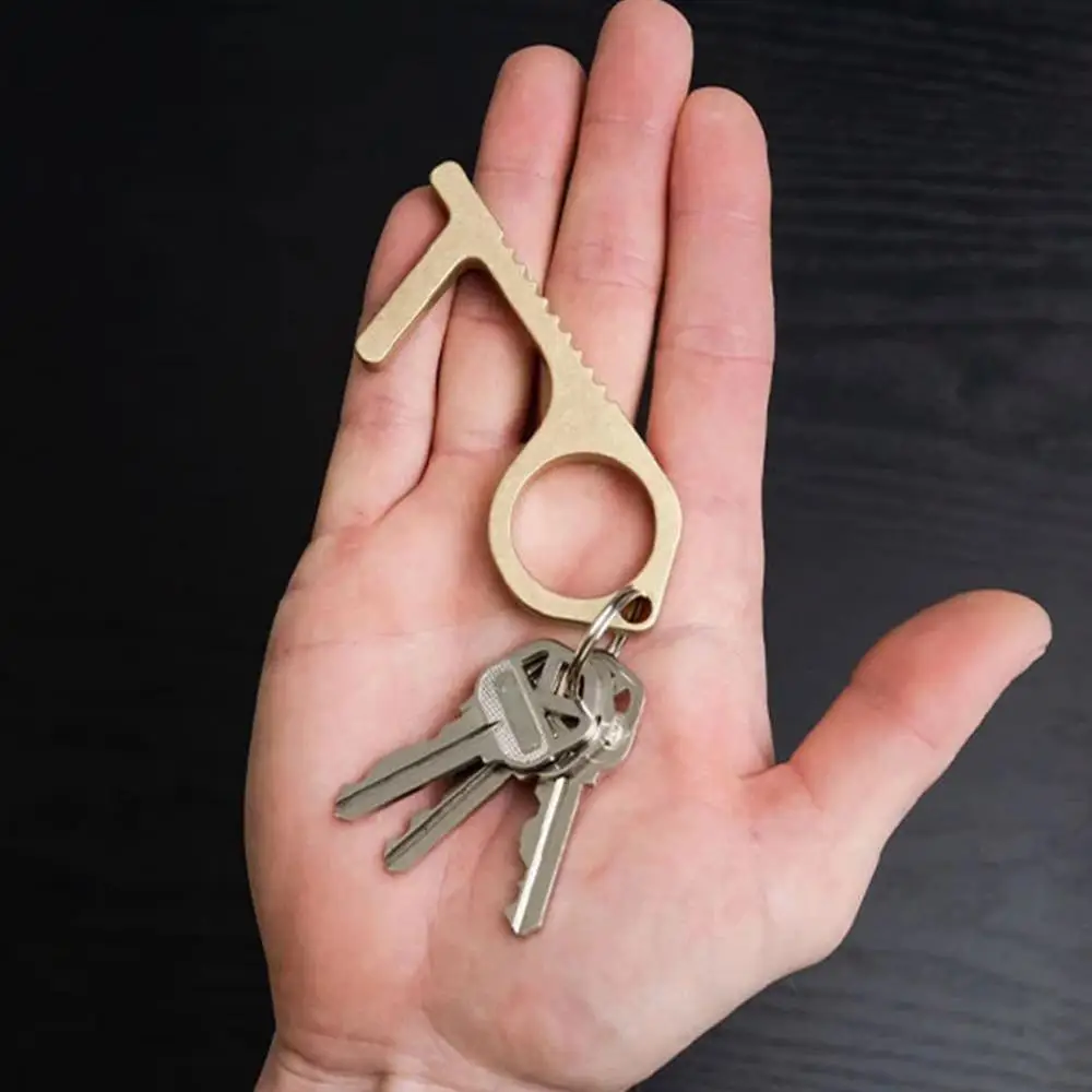 Гигиеническая ручная Антимикробная металлическая открывалка для дверей EDC Многофункциональный брелок для ключей антимикробный латунный ручной инструмент