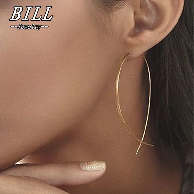ES143 в форме рыбы серьги гвоздики простота ручной работы медный провод для женщин Brincos de gota Feminino 2018 геометрический Новый