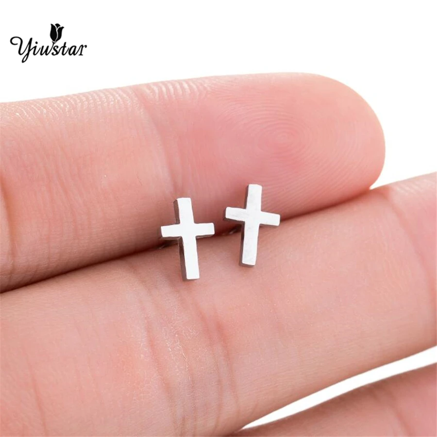 Yiustar простые Пуссеты крестики стальной цвет серьги из нержавеющей стали Очаровательные Элегантные серьги для женщин Рождество Keepsake
