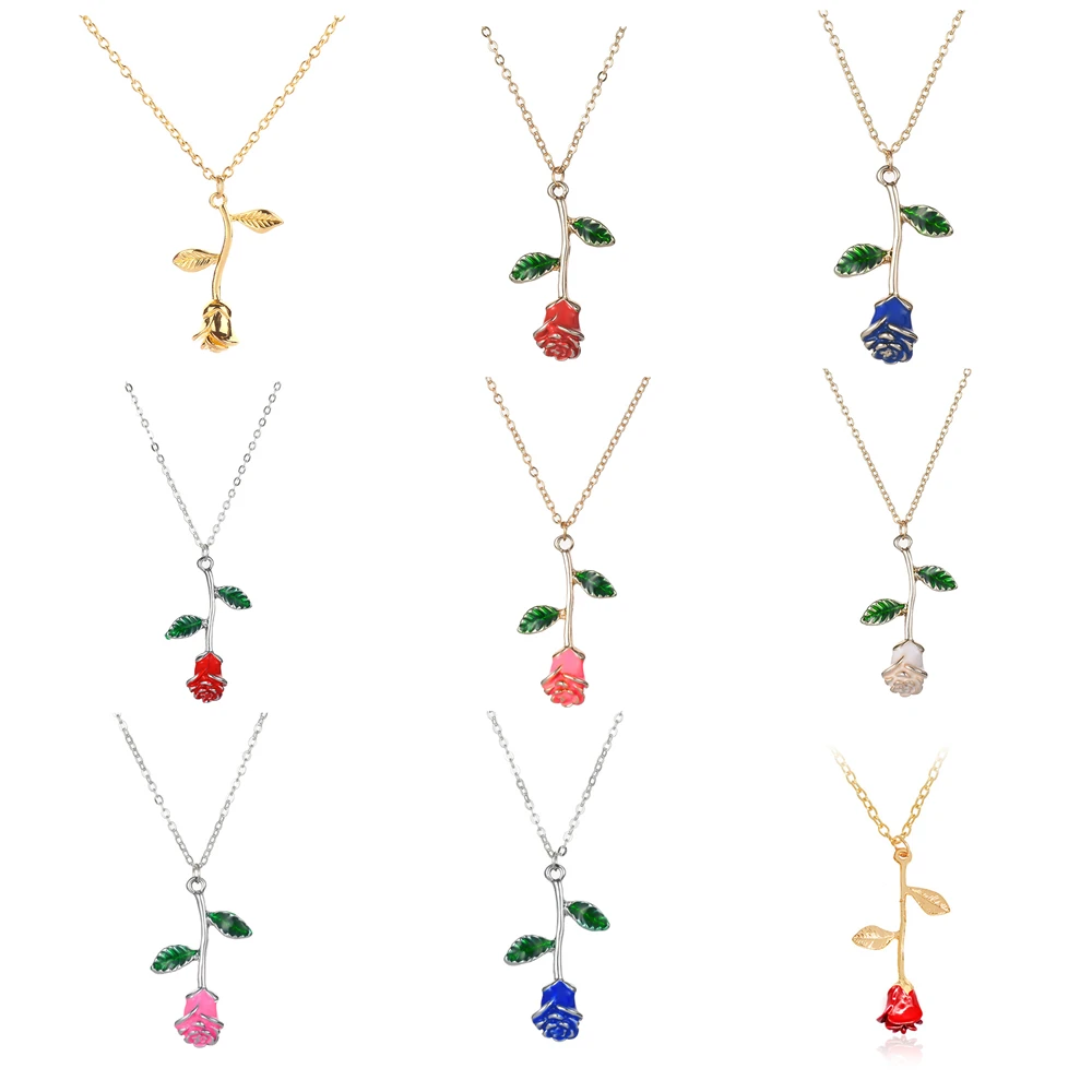 Классическое ожерелье с подвеской в виде цветка розы, Трендовое многоцветное ожерелье для женщин, простое колье, оптовая продажа, богемное ювелирное изделие