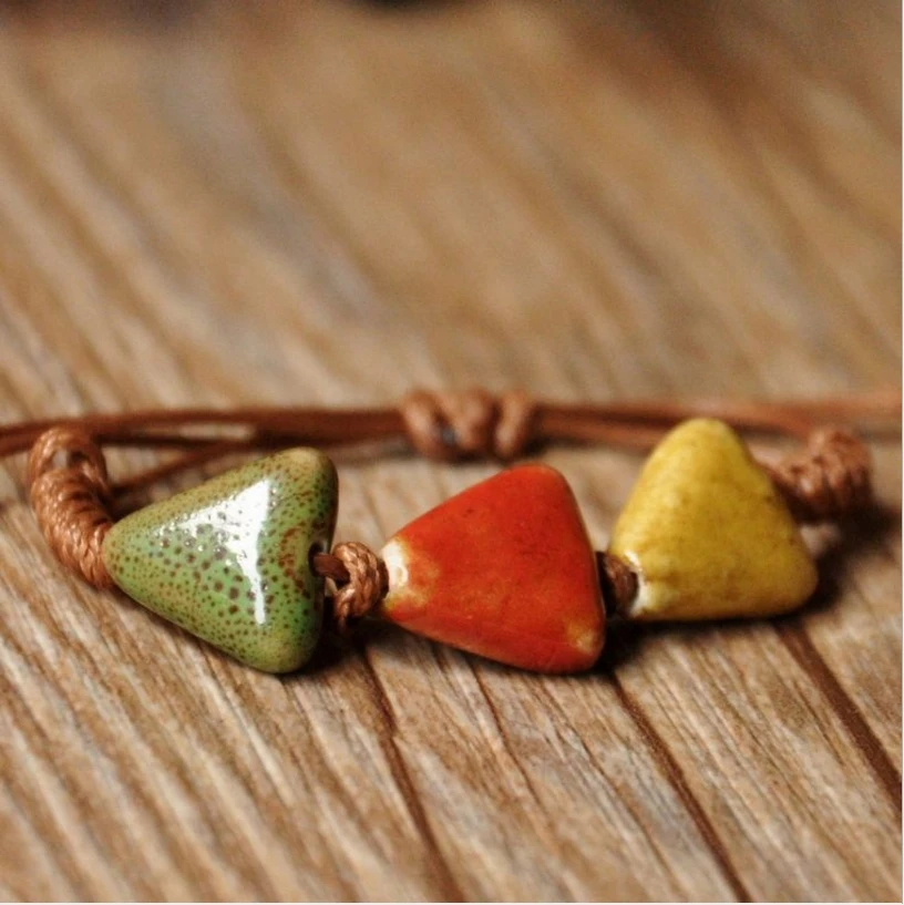 Женские и мужские браслеты из круглых бусин, черные керамические браслеты с сердечком, ручная работа, оптовая продажа