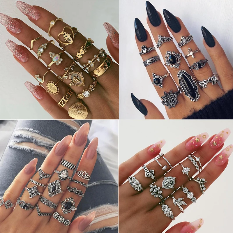 9 дизайнерских колец в стиле бохо, Ретро стиль, Золотая Звезда, миди луна, набор колец для женщин, опал, кристалл, миди, кольцо на палец, 2019, жен...