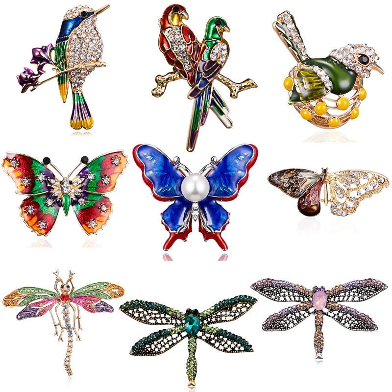 RINHOO Мода ручной работы Красочные бабочки пара товары для птиц Кристалл стрекозы горный хрусталь брошь булавки для женщин леди бижутерия