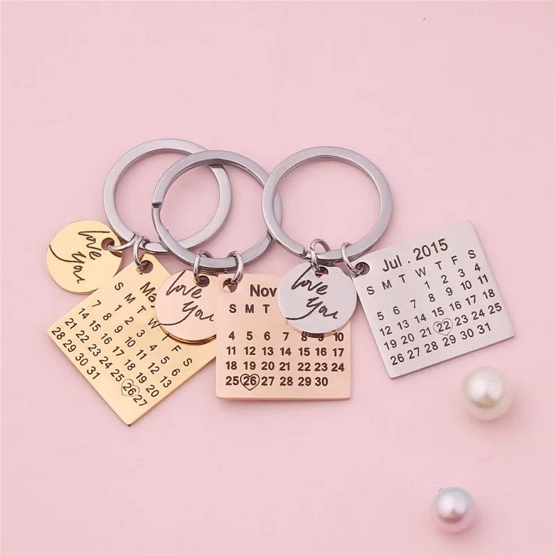 Личный календарь брелок из нержавеющей стали индивидуальные календари юбилей Дата выделен с сердцем Love You письмо