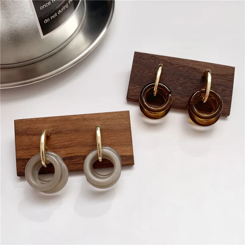 Геометрические многокруглые акриловые серьги из смолы, корейские женские Уникальные Коричневые Серые висячие серьги, аксессуары