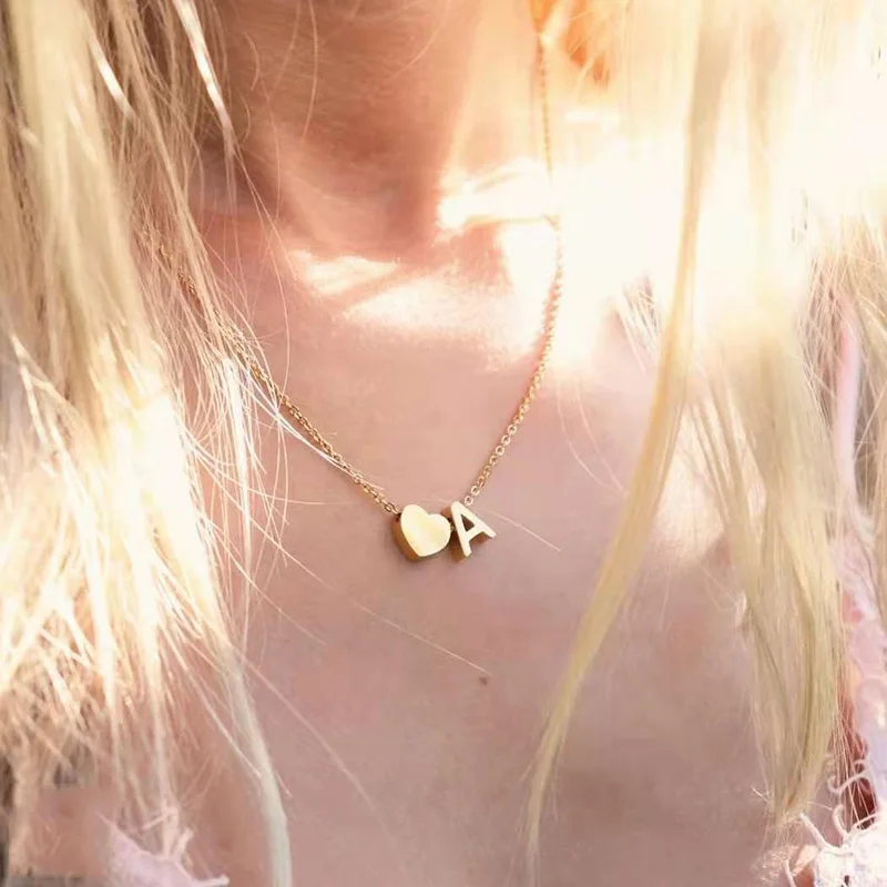 Модные маленькие сердце начальное Сердце ожерелья с буквой для Для женщин Нержавеющая сталь золотое ожерелье-чокер Сердце ожерелье с подвеской bff, ювелирное изделие, подарок