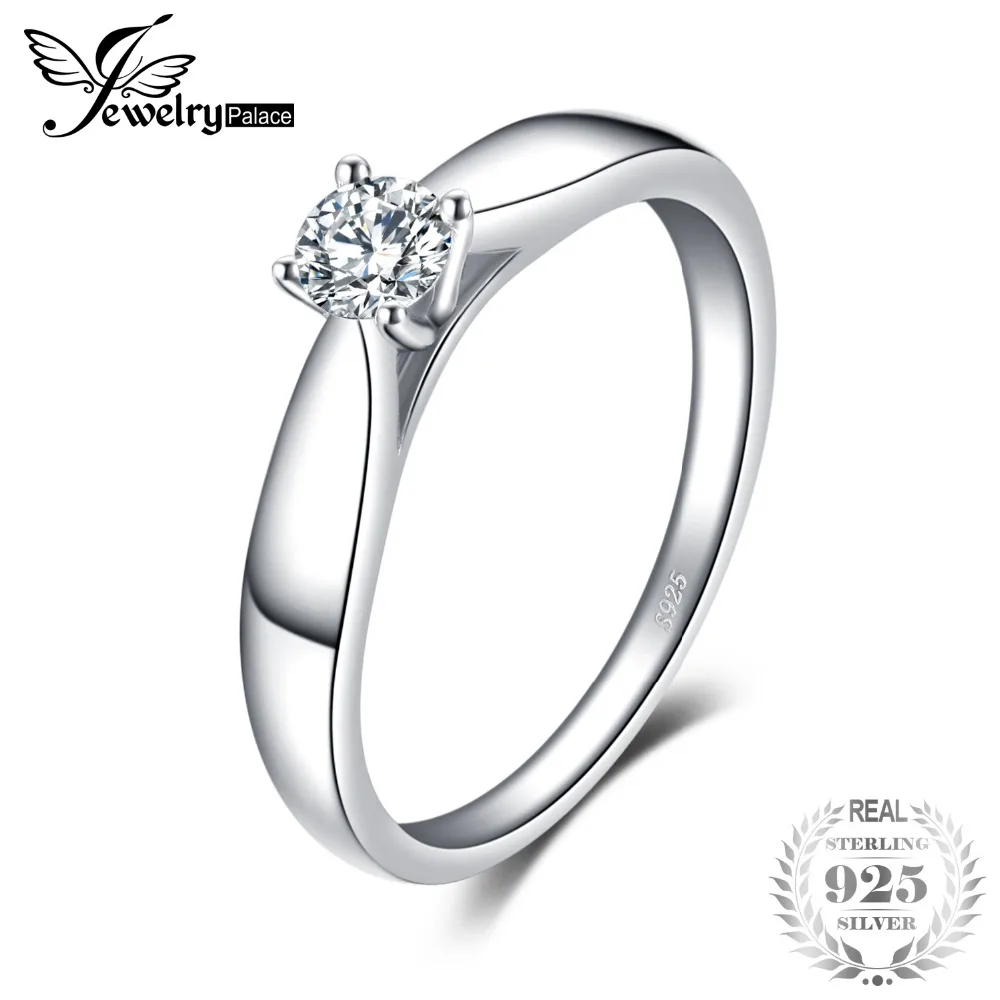Jewelrypalace стерлингового серебра 925 0.2ct кубического циркония Пасьянс Обручение кольцо для девочки модные простые украшения для Для женщин коль...