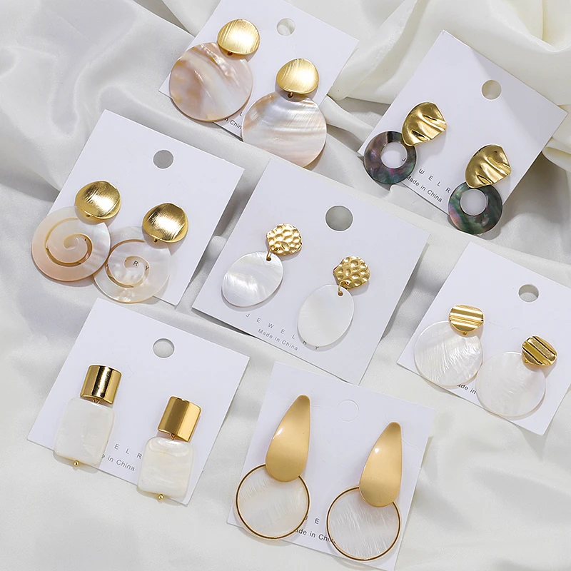 AENSOA, модные круглые жемчужные серьги в виде ракушки, простые натуральные Висячие серьги для женщин, геометрический золотистый, массивные серьги, ювелирное изделие