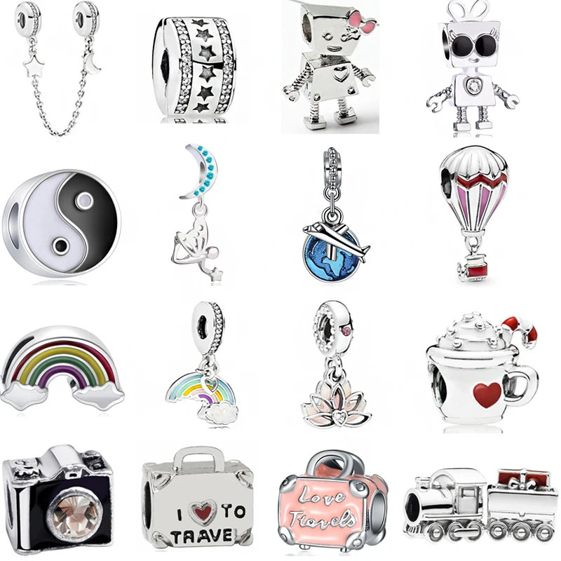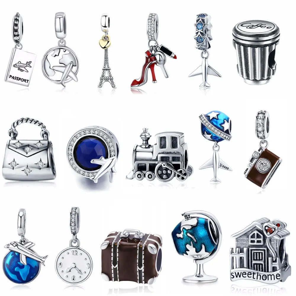 925 пробы Серебряный Berloque семья дом Эйфелева башня камера путешествия мечта кофе чашки обувь Шарм Fit Очарование ювелирный браслет сделай сам