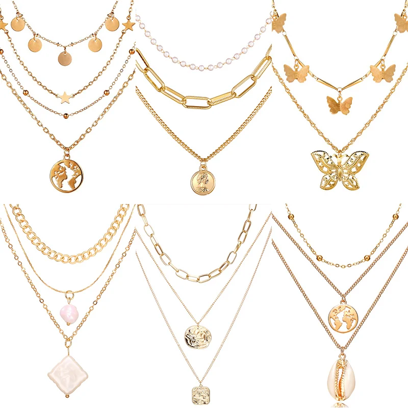 IF ME винтажное Бохо Золотое металлическое многослойное ожерелье для женщин Дамская мода цепь Длинный Воротник Подвеска Ожерелье s ювелирные...